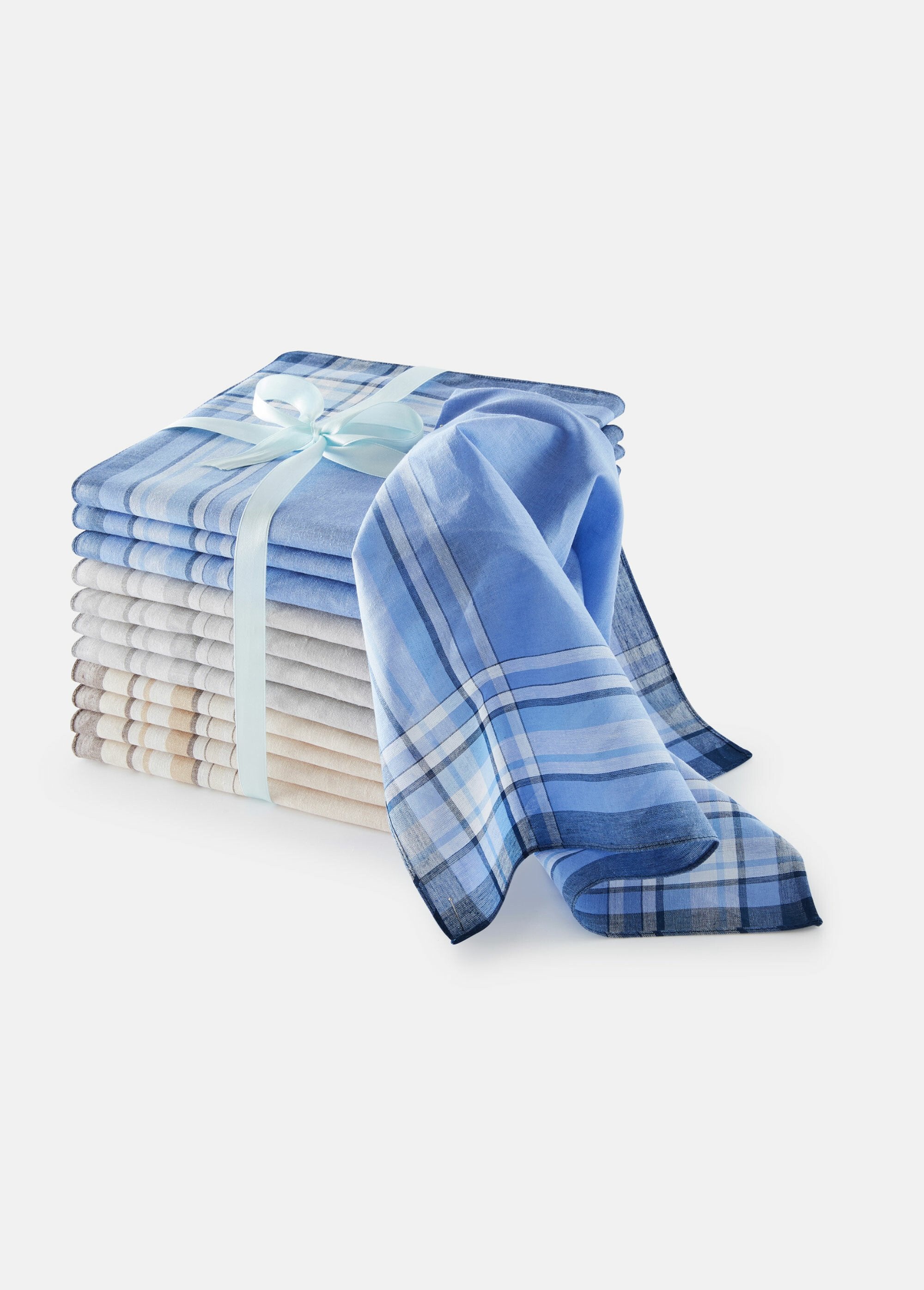 Updated with their woven-dyed checks in modern tones. 12 durable, dirt-repellent fabric handkerchiefs.